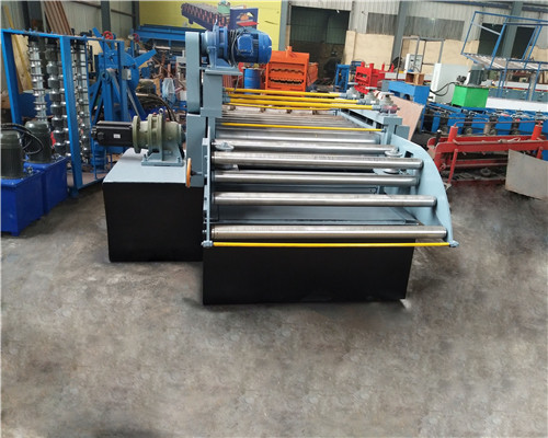 流程線組成設(shè)備:自動剪切—開平機—上料架—PLC電控箱—油泵